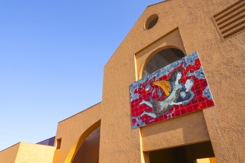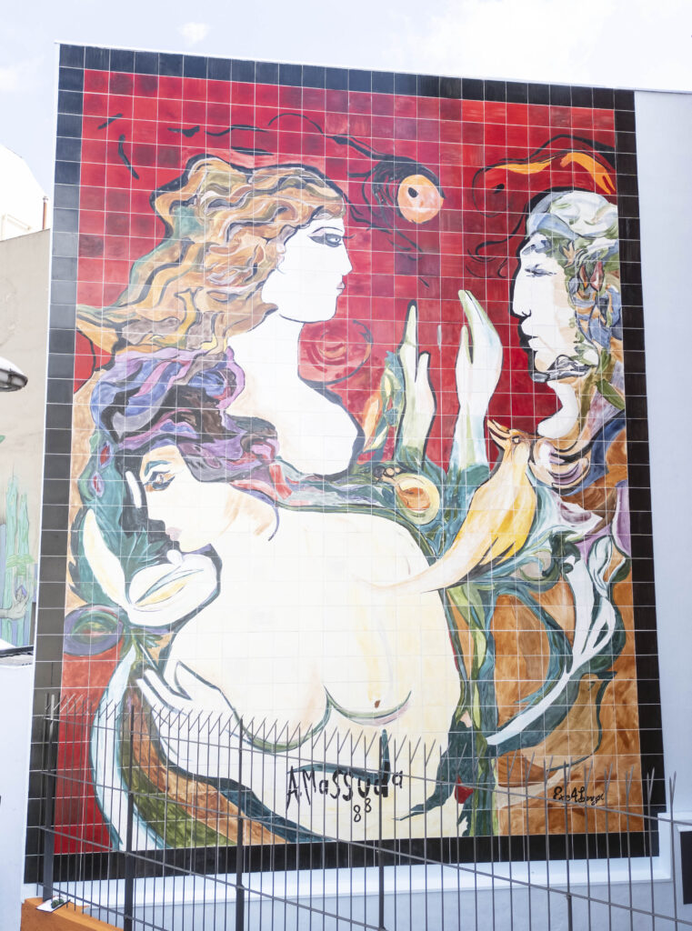 O painel Figuras e Pássaro é instalado na parede da Casa da Memória, no centro de Curitiba. A obra, uma reprodução em azulejo da pintura original do artista Alberto Massuda, datada de 1988, foi executada por Adoaldo Lenzi.