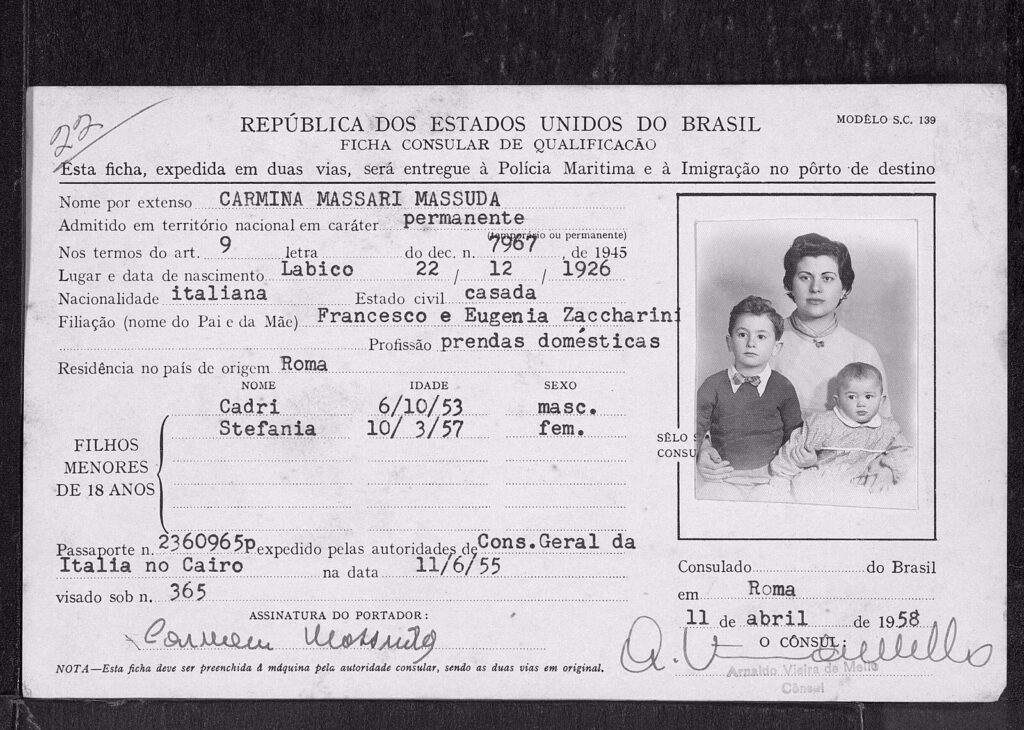 O casal e os dois filhos saem da Itália rumo a uma nova vida no Brasil.